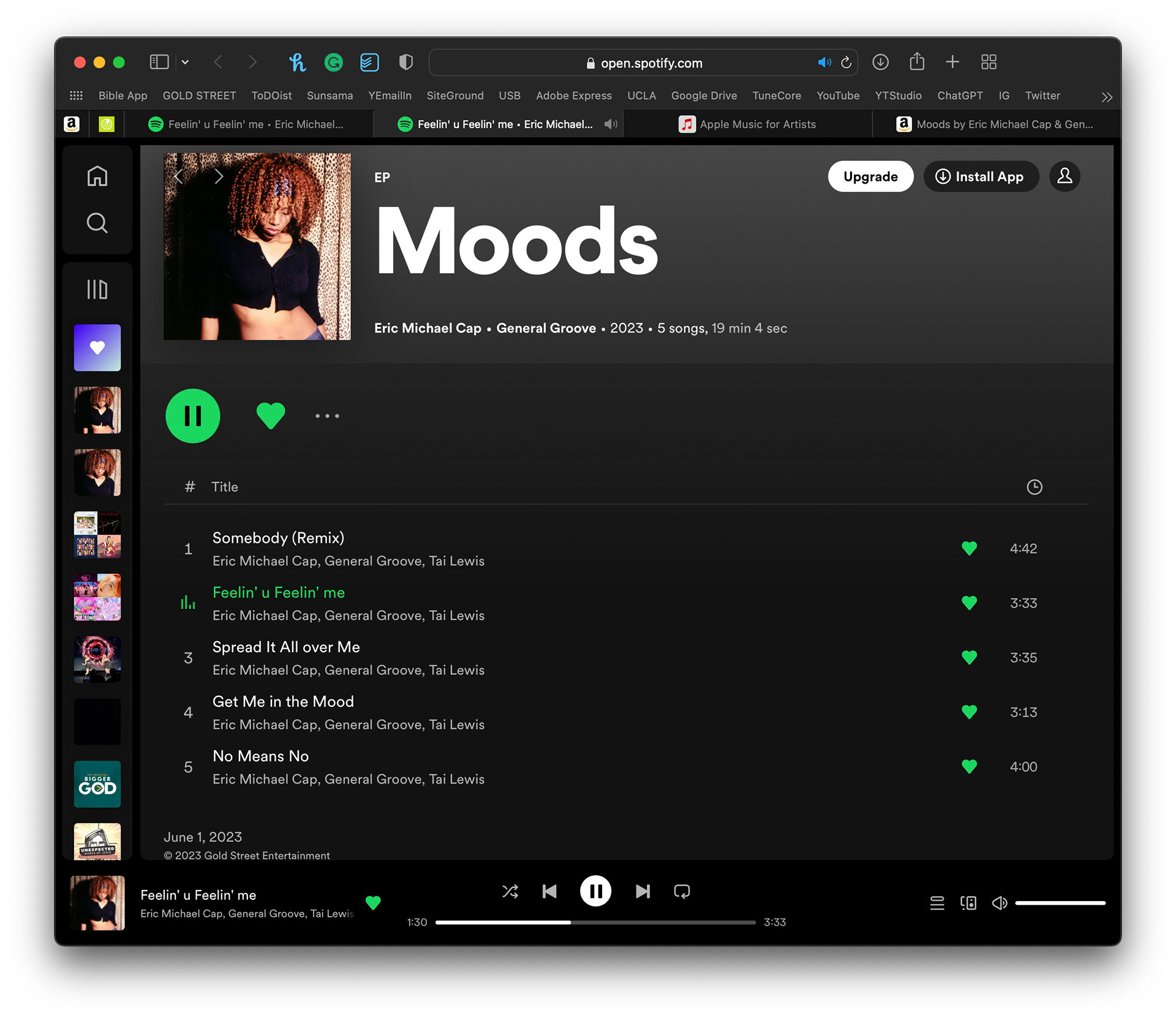 All Tracks were Produced (music), Recorded, Mixed & Mastered by Eric Michael Cap @ GOLD STREET, including all keyboard & guitar parts. All Songs are available for Licensing/Sync, Re-recording & adaptations (Spanish/K-Pop, etc.).